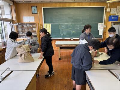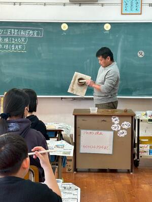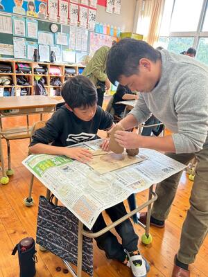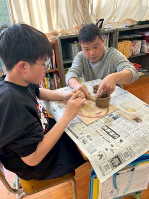 地域学校協働活動の一環として、「まもる窯」から陶芸の先生をお招きし、6年生を対象に陶芸教室が行われました。「まもる窯」の陶芸の先生から直接ご指導いただきながら、陶芸作品づくりに挑戦しました。やわらかな土の感触を楽しみながら、形を整えたり模様をつけたりと、世界に一つだけの作品づくりに集中して取り組む姿が見られました。 地域の伝統文化にふれ、ものづくりの楽しさや奥深さを感じる、貴重な学びの時間となりました。来週2回目の陶芸教室が行われ、完成を目指します。