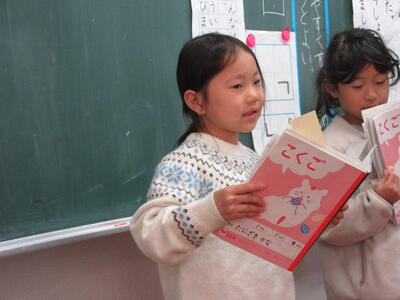 朝の時間には、先生方による読み聞かせが行われ、子どもたちは静かに耳を傾けながら、物語の世界に入り込んでいます。 読み終えたあとは、感想を伝え合う時間もあり、素直な声がたくさん聞かれました。 最後には、感謝の気持ちを込めて「ありがとうございました!」と元気なあいさつも聞こえてきました。