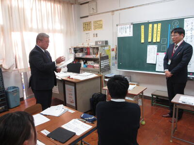 12月17日(水)、5年生の教室では、右田光一郎先生による国語科の研究授業が行われました。この日は、佐敷小学校の寺川スーパーティーチャー(指導教諭)を講師としてお招きし、子供たちの学びの様子を温かく見守っていただきながら、今後の授業づくりに繋がるたくさんのご助言をいただきました。