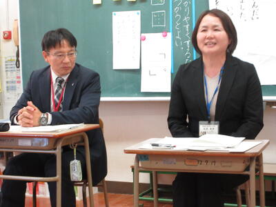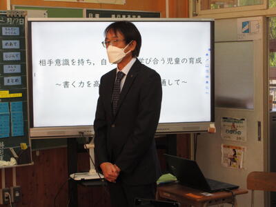 今回の授業は、本校の研究主題である「相手意識をもち、自ら考え、学び合う児童の育成~書く力を高める国語科学習を通して~」に基づいて行われました。寺川先生には、この研究主題の方向性について温かいお墨付きをいただくことができ、私たち教職員一同、大きな喜びと自信をいただきました。