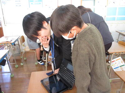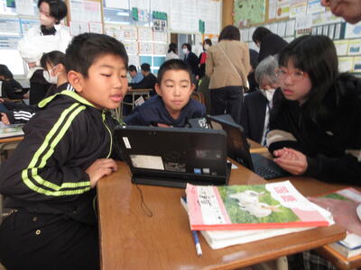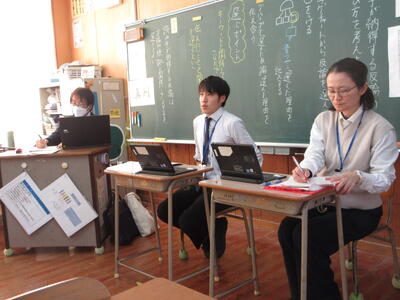 また、佐敷小学校の寺川先生にオンラインで授業を中継して指導を仰いでいます。研究授業に向けて大変お世話になっています。