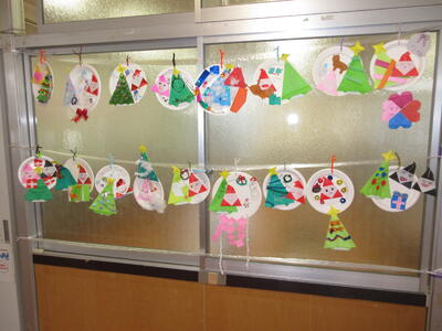 職員玄関を入ったところに秋のなかよしリースが飾ってあります。