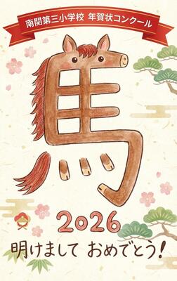 南関第三小学校では年賀状コンクールに全校児童で取り組んでいます。