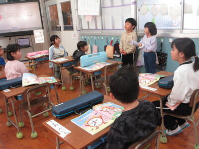「とくちゃんたちのなかま」の学習から、仲間はずれの悲しさや、友だちを大切にする心を学びました。「困っている人に声をかけたい」「だれでも仲間に入れたい」といった、やさしい思いがあふれる発表でした。