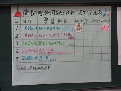 12月24日(水)、後期前半終わりの会の時に、養護教諭から「冬休みのくらし方」について大切なお話しがありました。詳しくは南関第三小学校のホームページ「保健室から」のコーナーでご覧ください。