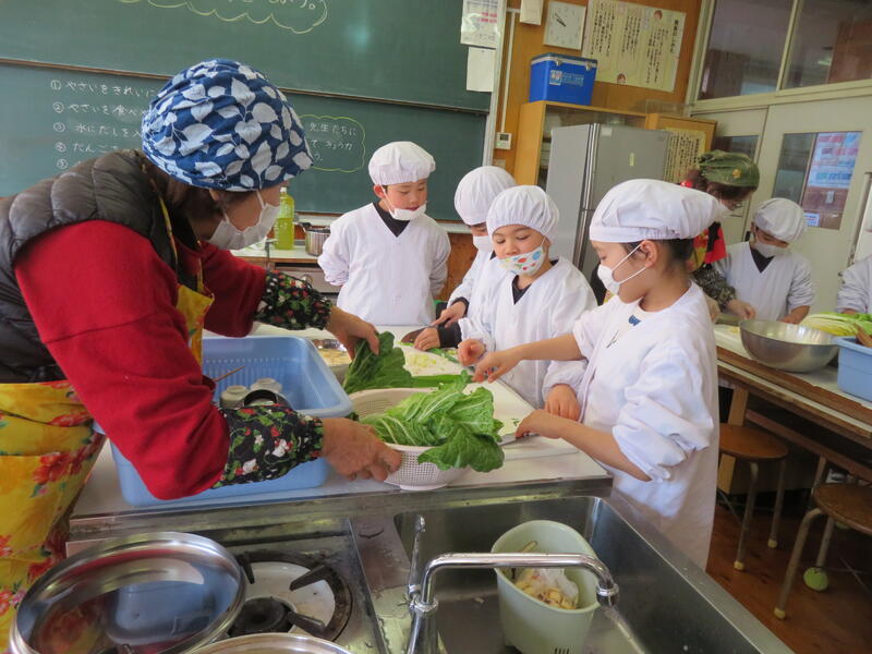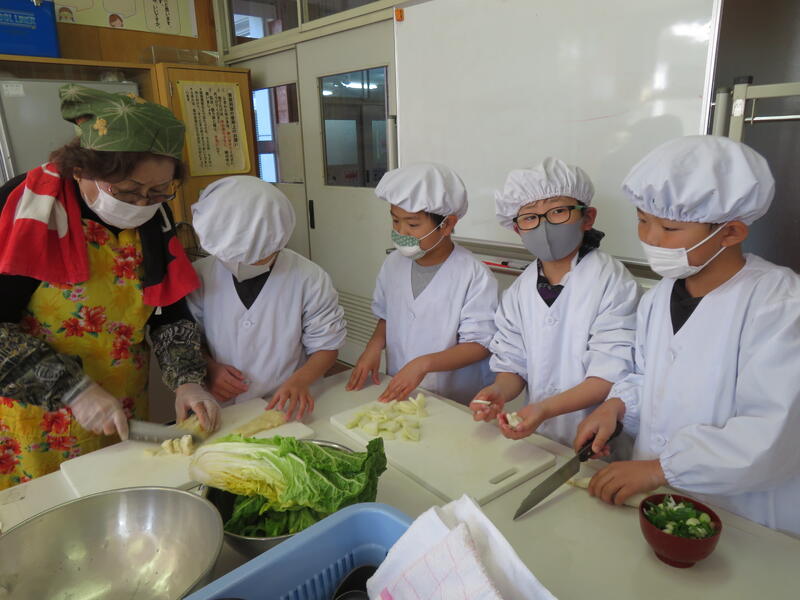 〇6年生による南関あげ巻き寿司作り体験: 郷土学習として、南関町の特産品である南関あげを使った巻き寿司作りに地域の方々の協力を得て取り組みました。食への感謝や地域への理解を深めるとともに、下級生にも巻き寿司を配ることで、学年間の繋がりも生まれています。