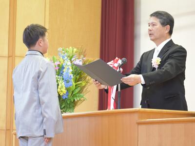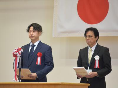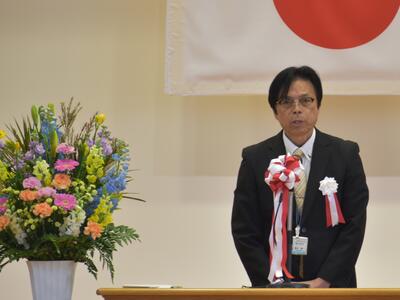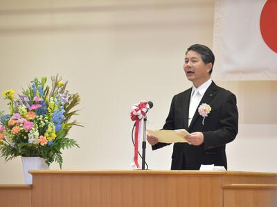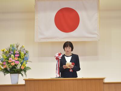 校長先生からの式辞の後、教育委員会から藤尾教育委員に告示を受け、南関町総務課長嶋永健一様から来賓祝辞を頂きました。