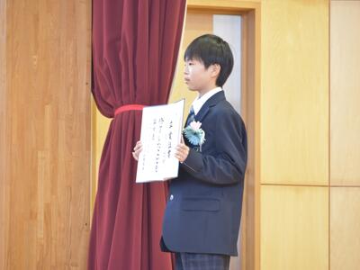 6年生が立派な返事と態度で、卒業証書を一人一人が受け取りました。6年間頑張った姿が思い浮かんだことだと思います。