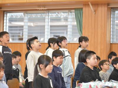 最後は、道徳科で学んだ命の尊さを胸に、『手のひらを太陽に』を合唱しました。澄んだ歌声と真っ直ぐな眼差しは、聴く人の心に明日への元気を届けてくれました。自分たちの足で歩き、心で感じたことを言葉や歌に乗せて届けた子どもたち。その一歩一歩の確かな成長が、ハゼの実のようにキラキラと輝いた、実り豊かなひとときとなりました。