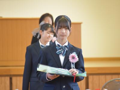 卒業式の祝詞の中で、町長からの祝詞には次のように本校の特色と卒業生の頑張りを述べていただきました。