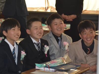 さて、4月からは次の学年に進みます。6年生はいよいよ中学生。5年生は新たな最高学年に、4年生は高学年に、3年生は委員会など学校の役割を果たします。2年生は、3年生として1、2年生のお手本に。1年生は、2年生となり新しい1年生の優しいお兄さん、お姉さんとなります。