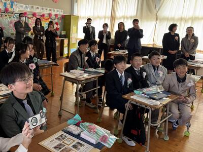 3月24日(火)、桜の花が開花し春の光が降り注ぐ中、南関第三小学校で卒業証書授与式が行われました。