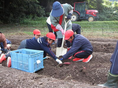 土にふれ、心豊かに~全校サツマイモ掘りを通して~