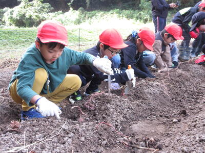 この活動を通して、子どもたちは、異学年の仲間と協力しながら作業を進める中で「協力する力」を、 どう掘ればうまくいくかを考えながら取り組む中で「考える力」を、 そして、苗植えから収穫までの長い道のりをやり遂げる中で「やり抜く力」を、しっかりと育んでいきました。