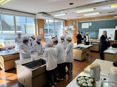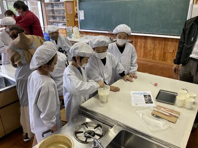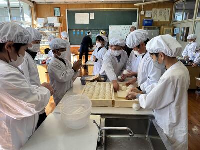 12月12日(金)、6年生が郷土学習「大好き!南関町」の一環として南関あげ巻き寿司づくりに取り組みました。婦人会の方々4名が「南関あげ巻き寿司作りの先生」として来校してくださり、子供たちは分からないところを優しくていねいに教わりながら安心して作業を進めることができました。校区の塩山食品さんからは、油抜きしてだしがよくしみ込んだ南関あげや椎茸、卵などの具材をご提供いただき、5年生が大切に育てて収穫した新米と合わせて、心のこもった味わいが生まれました。出来上がった巻き寿司は子どもたち一人一人が味わい、準備から提供までに関わったすべての人の「ありがとう」が自然と伝わる、学年を越えた温かな時間となりました。この活動を通して子どもたちは協力する力、考える力、やり抜く力を育み、地域と学校がつむぐウェルビーイングの輪を感じることができました。塩山食品さん、婦人会の皆様、地域の皆様のご支援に心より感謝申し上げます。