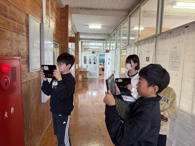 タブレットで学校内で調べタブレット端末で記録していきます。