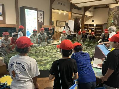 最初の見学地は円形分水です。 正確に水を分け合う仕組みを目の当たりにし、そこに込められた公平さへの願いや知恵に深く心を寄せ、物事の意味を捉えようとする「考える力」を働かせていました。