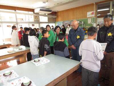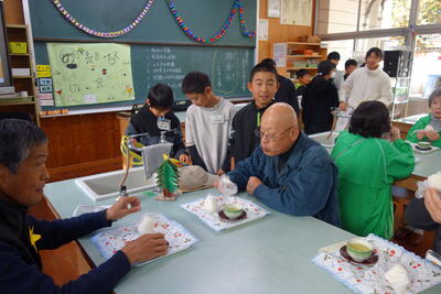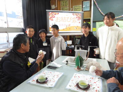 この日、5年生は自分たちで炊いたご飯をおむすびにして、福山 正英さんを始めとしてお世話になった地域の方々や婦人会の皆さんにふるまいました。 そのお結びには、いのちの恵みへの感謝と、支えてくださった方々への思いがぎゅっと込められていました。