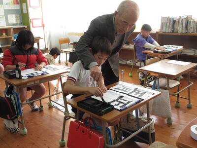 大里耕守先生による書写の特別授業