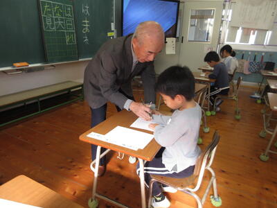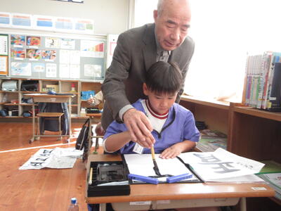 12月11日(木)、習字の先生の大里耕守先生をお迎えし、4・5年生は毛筆、2年生は硬筆の特別授業に取り組みました。