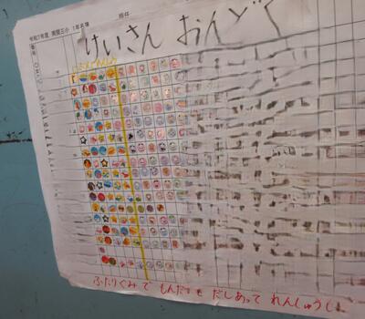 1年生は、毎日「けいさん」と「おんどく」に取り組んでいます。 できたらシールを貼る取組を通して、自分のがんばりが目に見える形で積み重なっていくことが、子供たちのやる気につながっています。