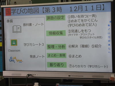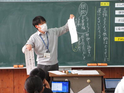 12月3日(火)、1年生の国語科授業を南関町教育委員会の寺田指導主事に参観いただき指導助言を受け授業改善を進めています。
