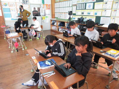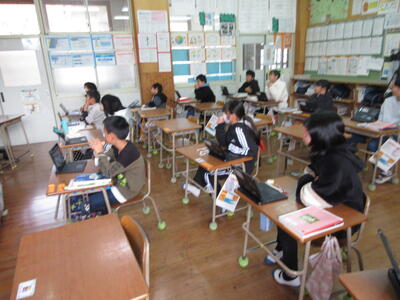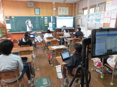 また、佐敷小学校の寺川先生にオンラインで授業を中継して指導を仰いでいます。研究授業に向けて大変お世話になっています。