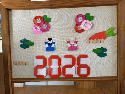 児童昇降口にあるお正月掲示です。