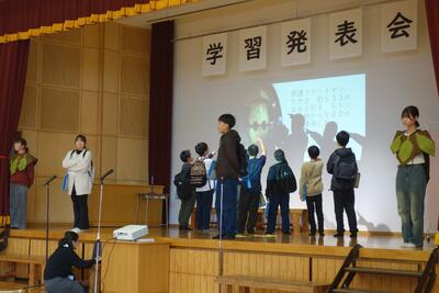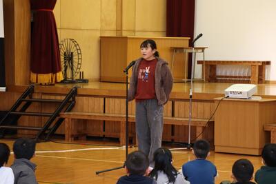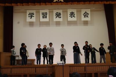 2年生は生活科や算数で学習してきたことを発表しました。南関町で活躍されているところや人々を訪ねて学習したことをハキハキと分かりやすく発表しました。道徳科で学んだことをもとに「手のひらを太陽に」の歌を披露しました。