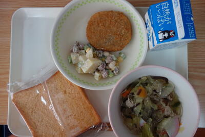 本日は、タイピーエン、うまかコロッケ、まめまめサラダ、トマトパン、牛乳でした。