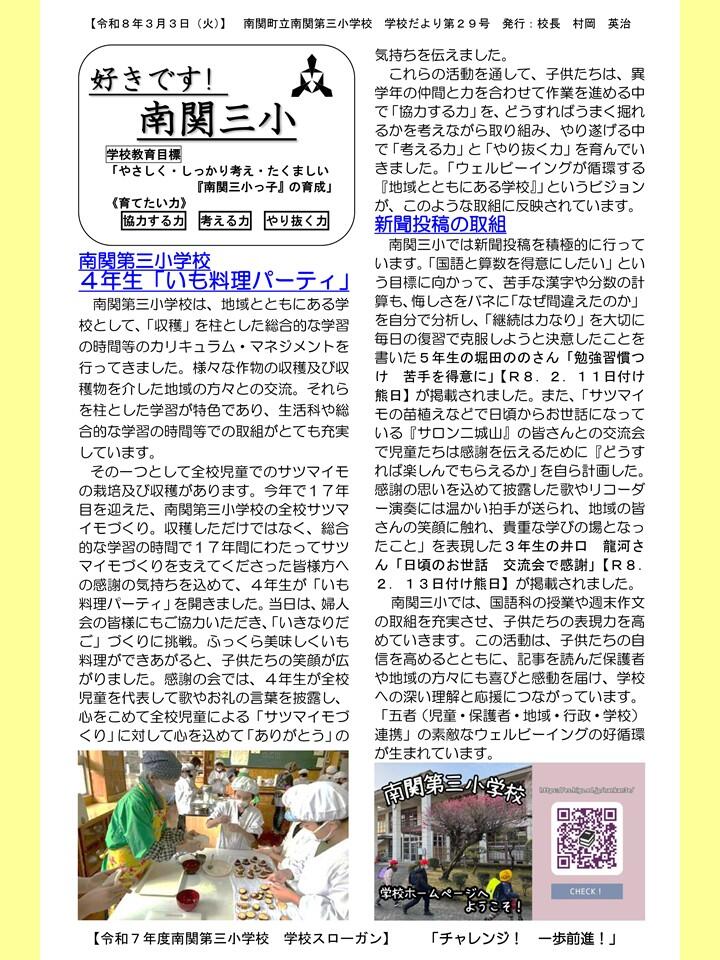 NO.29 260303 学校だより R7「好きです! 南関三小」29号(南関第三小学校)(送付用・HP用).pdf