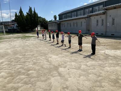 次に,外でかげつなぎをし,かげに対する気づきと疑問について考えました。気づきでは,「かげはみんな同じ方向を向いている。」や「かげの位置は変わらない。」や「長さが短かった。」等と考えていました。疑問では,「自分が向いた方にかげがついてこないのはなぜか。」,「手をつないでいないのにつないでいるように見えるのはなぜか。」などが出てきました。どれも面白い気づきや疑問だと思いました。