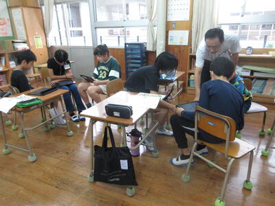 子供たちは、一日の授業について漢字を組み合わせて文章を作っていく学習を行い、互いに伝え合っていました。