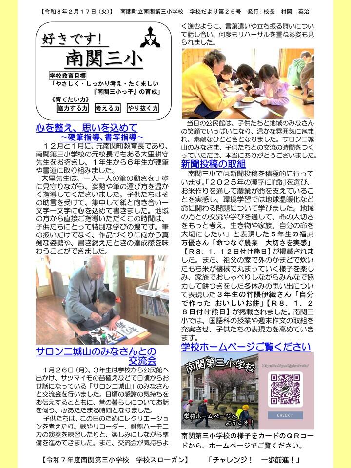 NO.26 260217 学校だより R7「好きです! 南関三小」26号(南関第三小学校).pdf