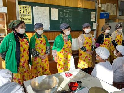 収穫しただけではなく、総合的な学習の時間で17年間にわたってサツマイモづくりを支えてくださった皆様方への感謝の気持ちを込めて、4年生が「いも料理パーティ」を開きました。当日は、婦人会の皆様にもご協力いただき、「いきなりだご」づくりに挑戦。ふっくら美味しくいも料理ができあがると、子供たちの笑顔が広がりました。感謝の会では、4年生が全校児童を代表して歌やお礼の言葉を披露し、心をこめて全校児童による「サツマイモづくり」に対して心を込めて「ありがとう」の気持ちを伝えました。