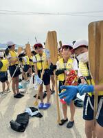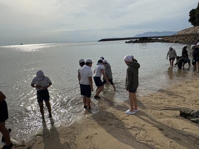 5年生の集団宿泊教室は、ペーロンの後に芦北の海辺で磯活動を行いました。