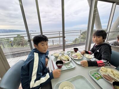 また、水俣市では語り部の緒方正実さんから、水俣病の歴史やご自身の体験を通して、命の尊さや環境を守ることの大切さを学びました。中でも、「差別や水俣病と向き合い、幸せを見つけ、何事も前向きに変えていくことが大切」という言葉は、子供たちの心に深く残ったようです。 その言葉を胸に、自分の思いや考えを仲間と語り合う姿から、考える力がしっかりと育っていることが感じられました。