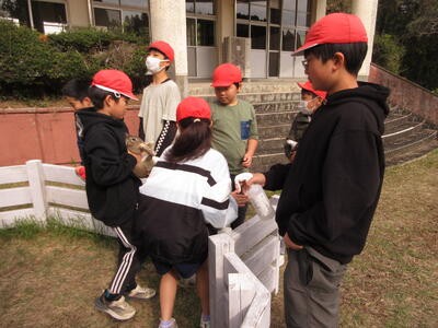 環境飼育委員会の児童が中心となって「ウサギとのふれあい」の時間が始まりました。 この取組は、学校で飼っているウサギとのふれあいを通して、生き物に対する理解や愛情を深めることを目的としています。