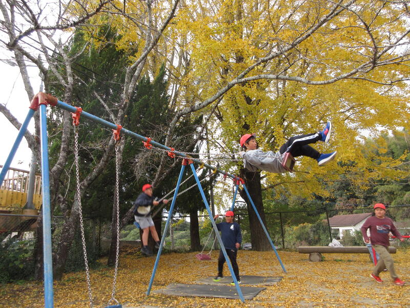 秋の陽ざしがやさしく降りそそぐ昼休み。 校庭の銀杏の木の下では、子どもたちが元気いっぱいに遊ぶ姿が見られます。