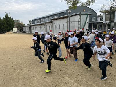 まずグラウンドを走ります。これから持久走の季節ですね。