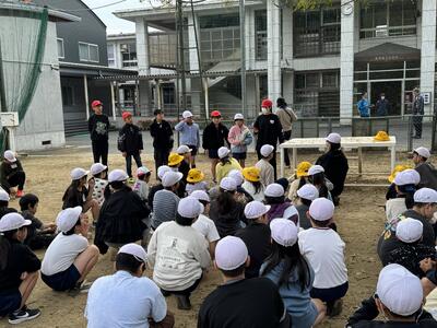 10月24日(金)、秋のやわらかな日差しの中、南関第三小学校の1・2年生が、校区内にあるニューガイアアグリ株式会社 南関豊永キウイファームを訪れ、キウイの収穫体験を行いました。この活動は、ニューガイアアグリ株式会社様二お世話になり地域の自然や産業にふれながら、食べ物の大切さや感謝の心を育むことを目的に、毎年実施されているものです。