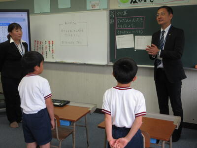 11月17日(月)、松山 理子先生の授業参観に玉名教育事務所から大丸社会教育主事が来校されました。