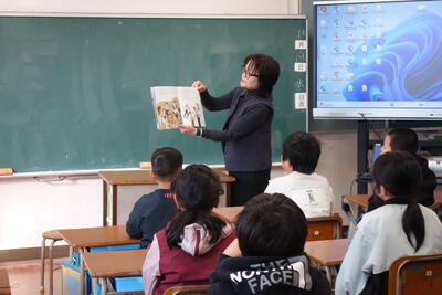 秋の読書旬間が始まり、南関第三小の校舎には、ページをめくる音と、物語に耳を傾ける静かな時間が流れています。 今年は、先生方による読み聞かせに加えて、村岡校長先生による英語の絵本の読み聞かせも行われました。 子どもたちは、英語の響きや絵の世界にふれながら、ことばの面白さや、物語のあたたかさを感じるひとときを過ごしています。