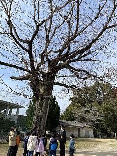 三小には、たくさんの自然があります。ウメやセンダン、サルスベリなど観察をして回りました。