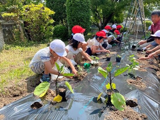 2年生の生活科では、夏野菜の苗植えを行いました。