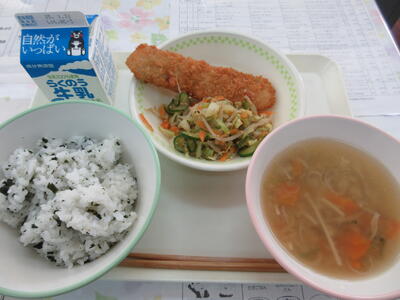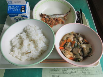 今日は、ししゃもがまるごと1尾でました。みんな、食べられたかなー?おうちでも食べられたか、聞いてみてください。