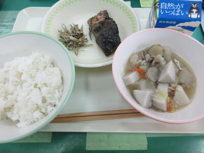 今日は、おひめさん団子汁でした。おひめさん団子汁は、だんごがだご汁と違うそうです。小麦粉に蒸したさつまいもを練り込んでいるそうです。なぜ「おひめさん」かというと、さつまいもを練り込んだだんごはやわらかく、おひめさんの肌のようだ、ということでこの名前がついたそうです。今日もおいしくいただきました。