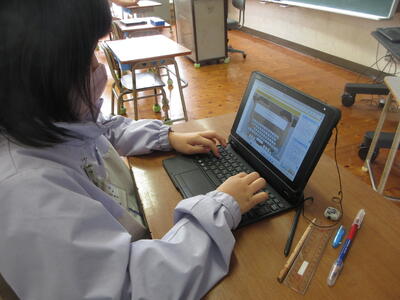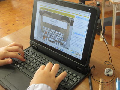 タブレット端末でタイピングの練習をしています。ご家庭でも練習お願いします。