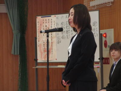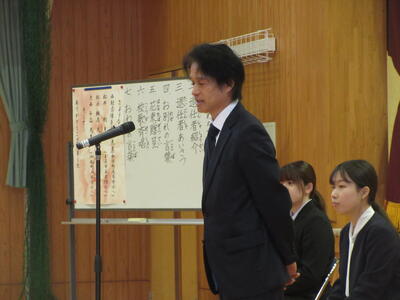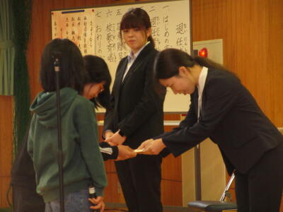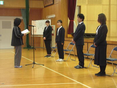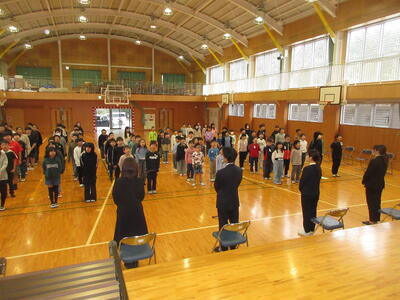 12月24日(金)、後期前半の「終わりの会」が開催されました。この日は、各学年の代表児童6人が後期前半に一生懸命に頑張ったことを全校児童の前で発表してくれました。会場は大きな拍手と温かさで一人ひとりの努力と成長が心に響く瞬間となりました。