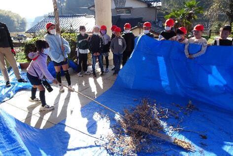 4日は、(株)丸美屋より4名来校されて、脱穀体験をさせていただきました。「めぐり棒」で
